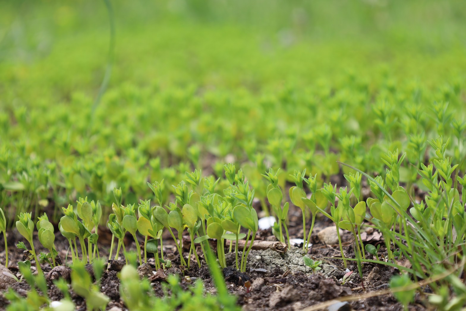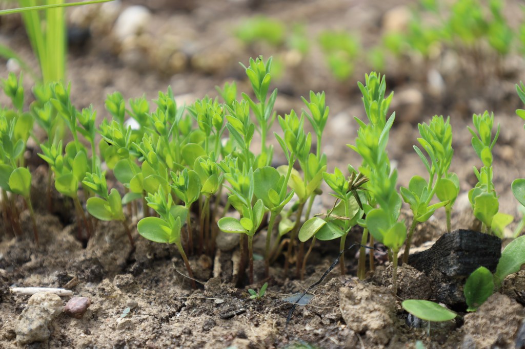 I sowed the flax in rows, and I’m using two different seeds. On the small field (front): biological fiber flax called ‘Lisette’, provided by the 1m2 vlas project. On the big field (back): biological fiber flax called ‘Astella’. I’m curious to see if I’ll notice any differences in growth and/or fiber processing.