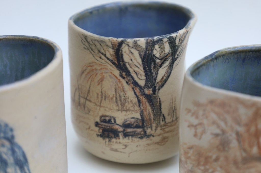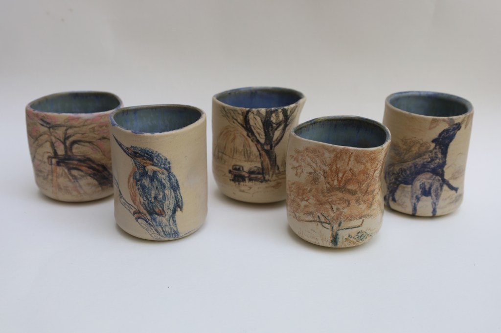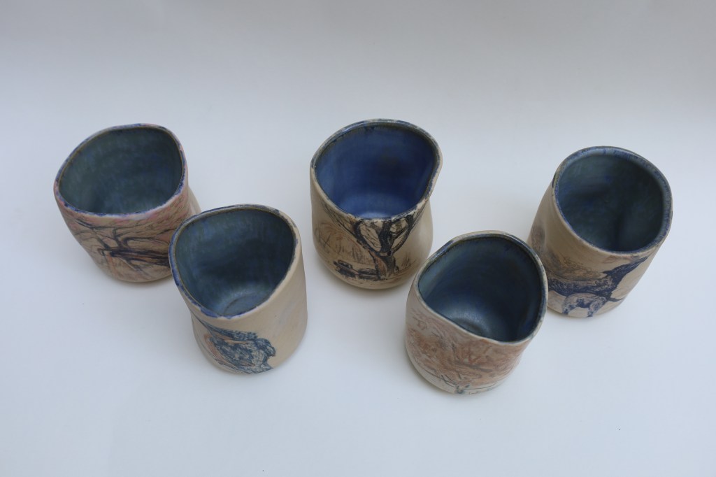 Handmade & foodsafe ceramic items, based on pages in my sketchbooks.