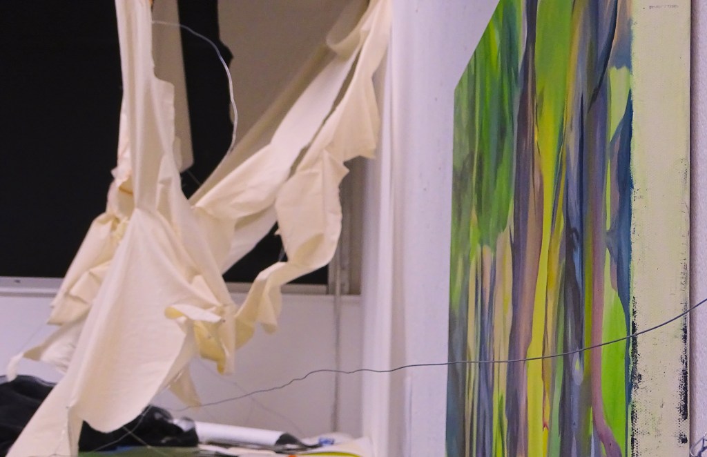 Figures, 2020 installation view Painting from “Figures”, 2020100×100 cmoil paint on canvas (1-3) canvas sculpture from “Figures”, 2020unprepared canvas, cotton yarn, iron wire