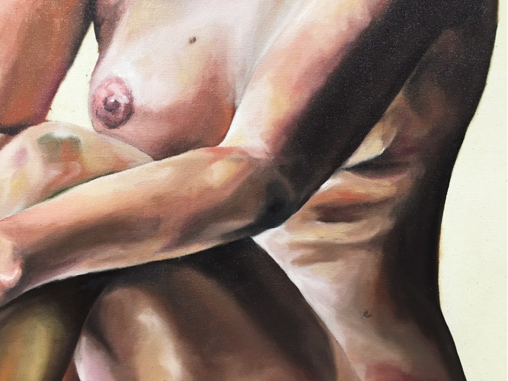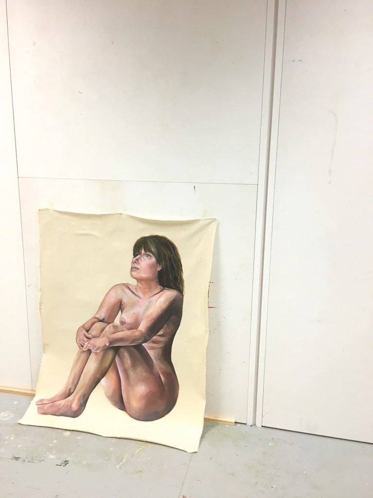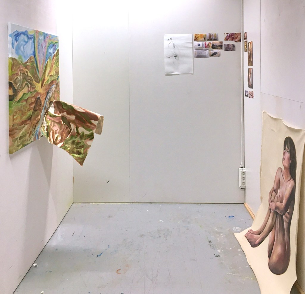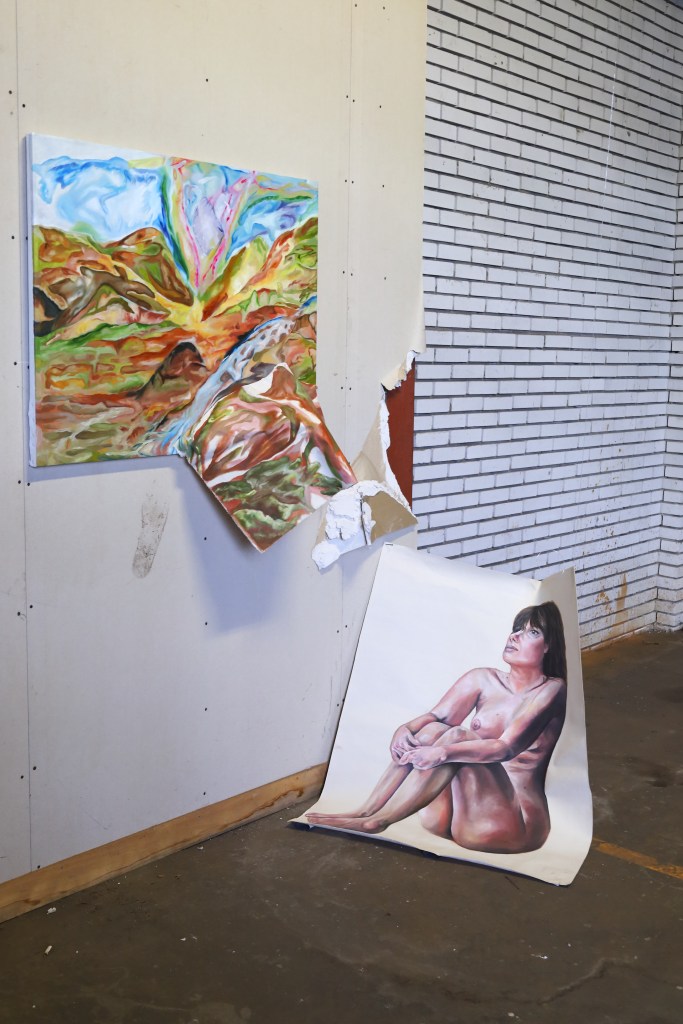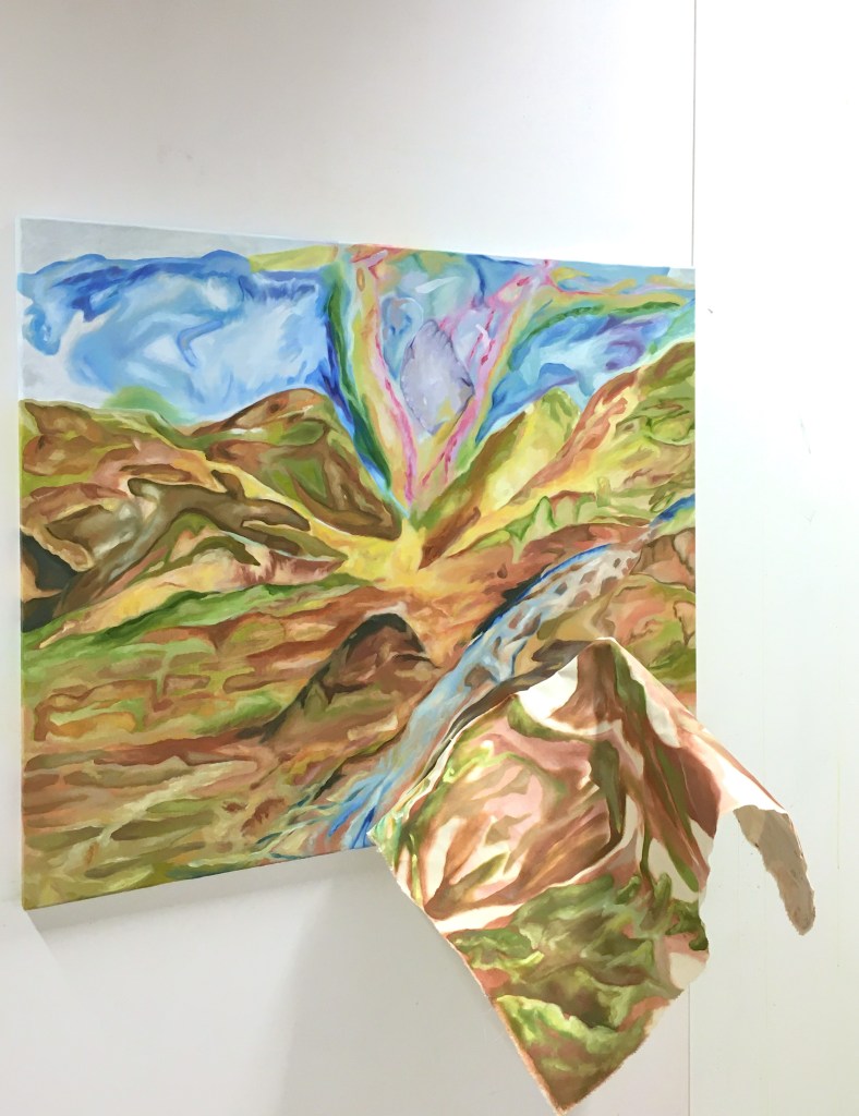 Hideout, 2021 A dialoge between the figure and the landscape. Vulnerable, from memory. Hideout, 2021installation view Hideout, 2021studio view The figure from “Hideout”, 2021 detail of the figure from “Hideout”, 2021 The landscape from “Hideout”, 2021