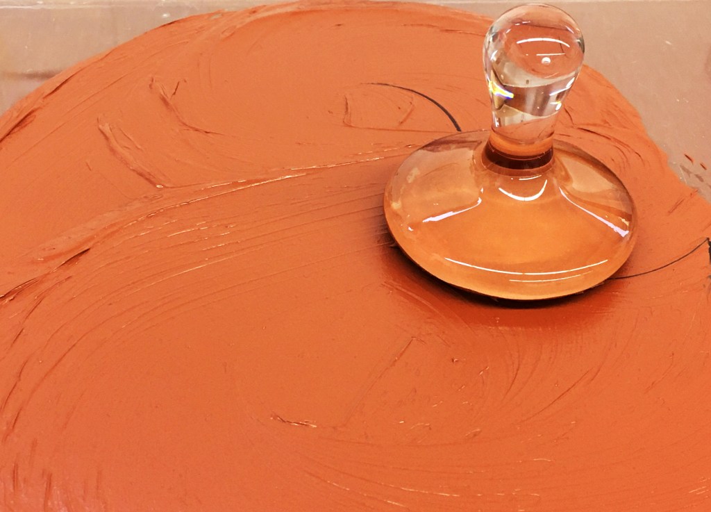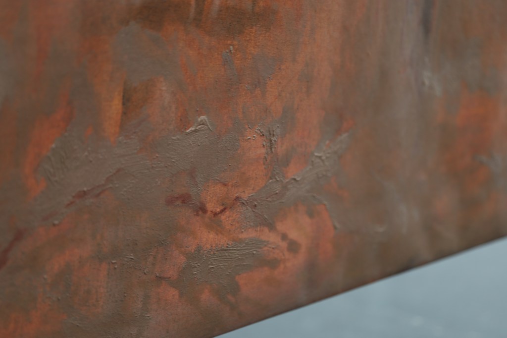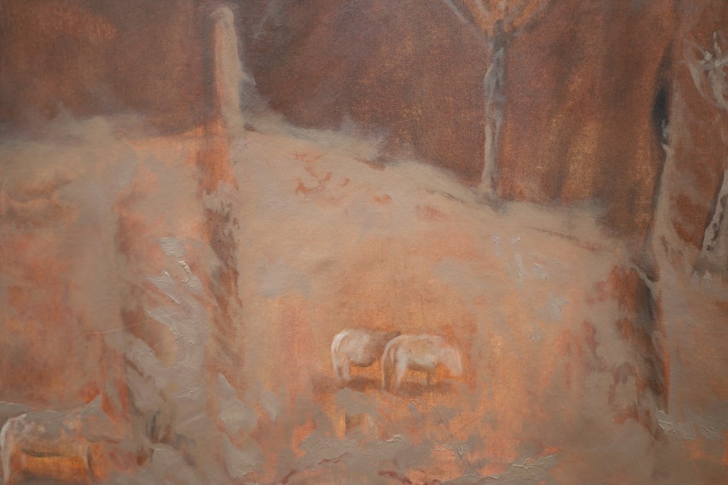 In this work, Maud used all natural and handmade pigments, and made them into oil paint. Apart from white, to brighten some of them, which came from a tube of oil paint.