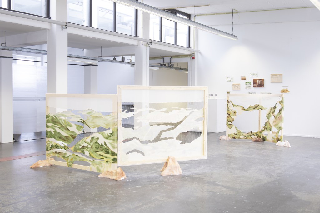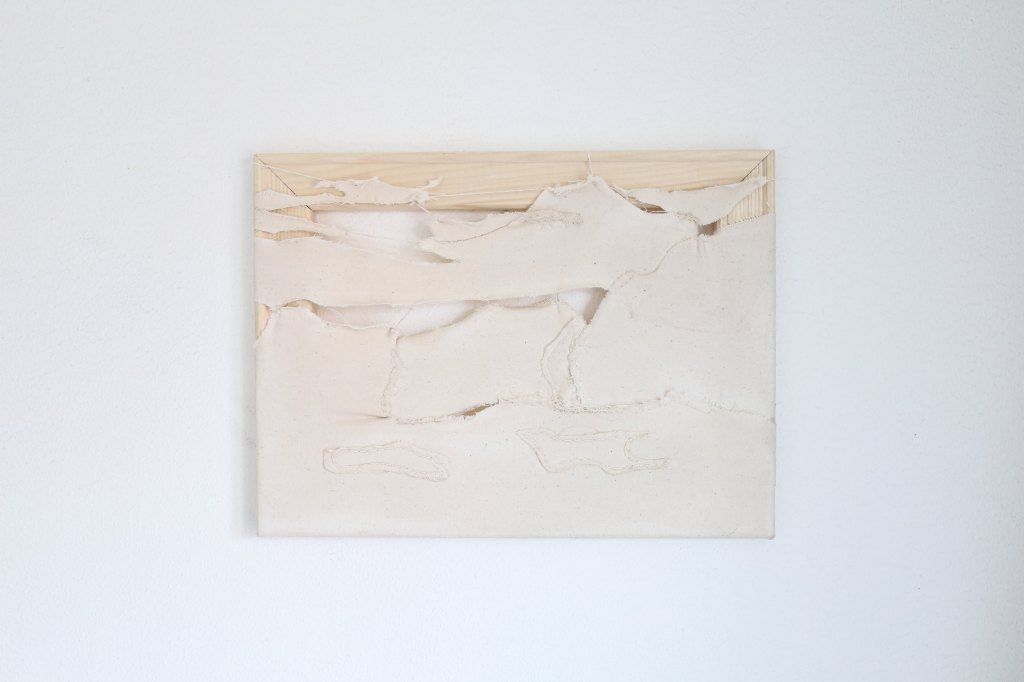 Paintings: selfmade oil paint, pigments, cotton yarn, cotton canvas, textiles, wood
